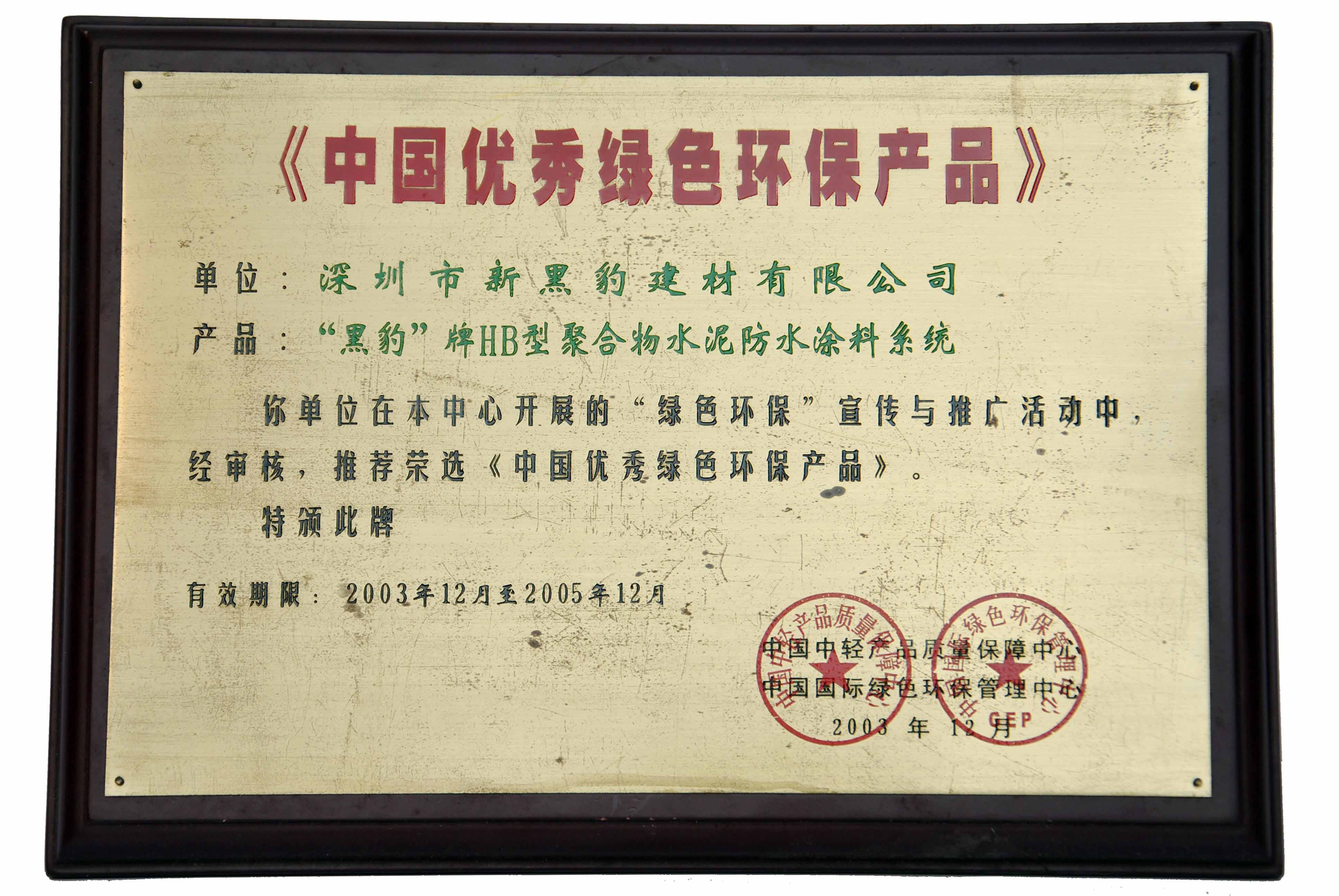我公司產(chǎn)品2003年12月獲得《中國優(yōu)秀綠色環(huán)保產(chǎn)品》榮譽證書