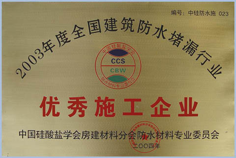 全國(guó)建筑防水施工優(yōu)秀企業(yè)