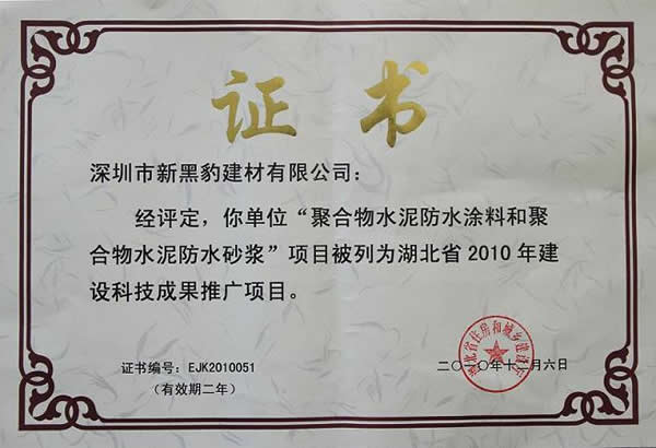 我公司聚合物水泥防水涂料和聚合物水泥防水砂漿被評為湖北省建設(shè)科技成果推廣項目。