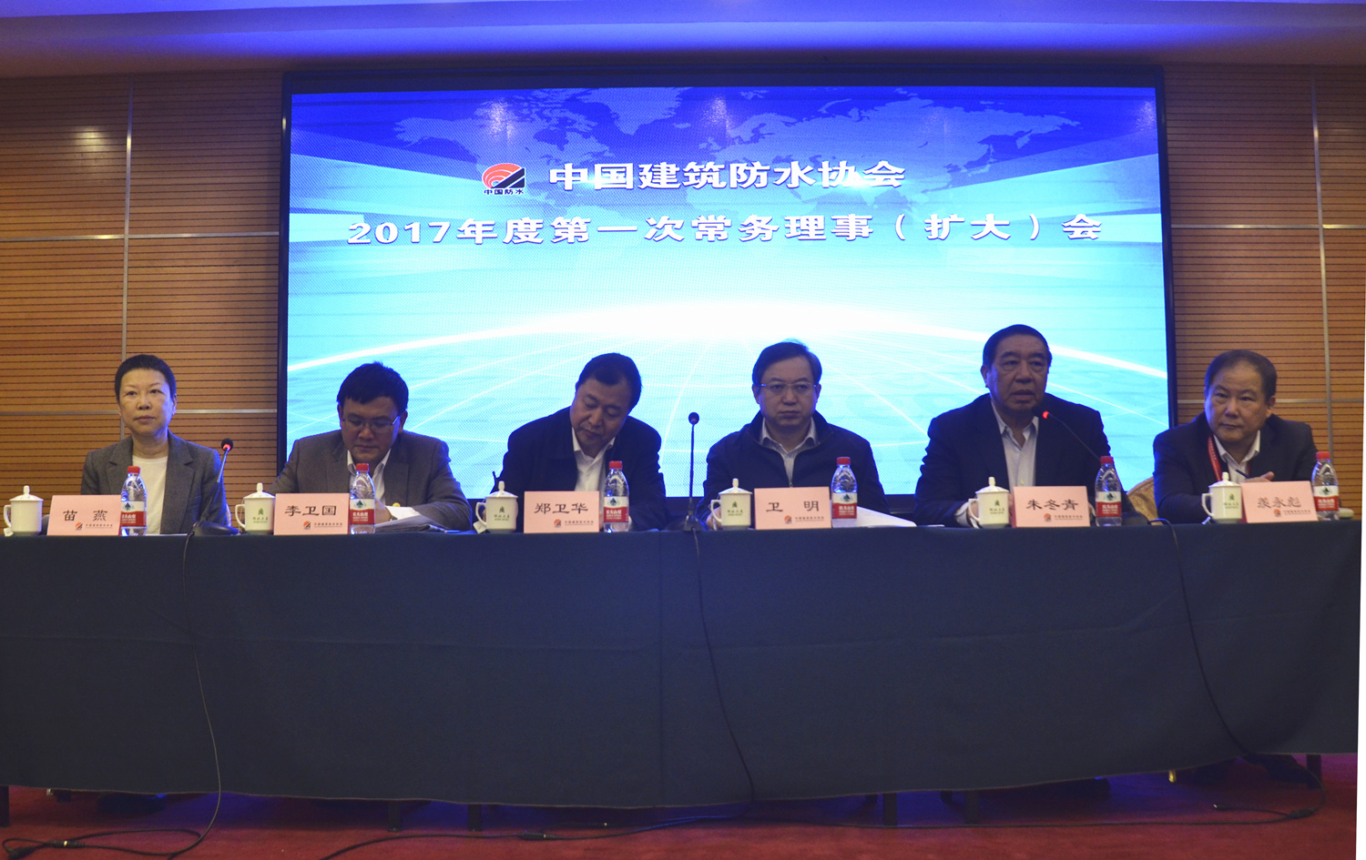 為探討行業(yè)全產(chǎn)業(yè)鏈質(zhì)量提升機制,介紹相關(guān)產(chǎn)業(yè)政策,4月10日上午,中國建筑防水協(xié)會2017年度第一次常務(wù)理事(擴大)會在北京湖北大廈召開。質(zhì)檢總局產(chǎn)品質(zhì)量監(jiān)督司巡視員鄭衛(wèi)華,住建部標(biāo)準(zhǔn)定額司副巡視員衛(wèi)明,中國建筑防水協(xié)會會長李衛(wèi)國、秘書長朱冬青、副會長羨永彪等領(lǐng)導(dǎo),以及協(xié)會正副會長、常務(wù)理事、各分會負(fù)責(zé)人及地方防水社團組織負(fù)責(zé)人等共百余人出席了此次會議。會議由中國建筑防水協(xié)會副會長苗燕主持。我公司深圳市新黑豹建材有限公司也應(yīng)邀參加了此次會議。